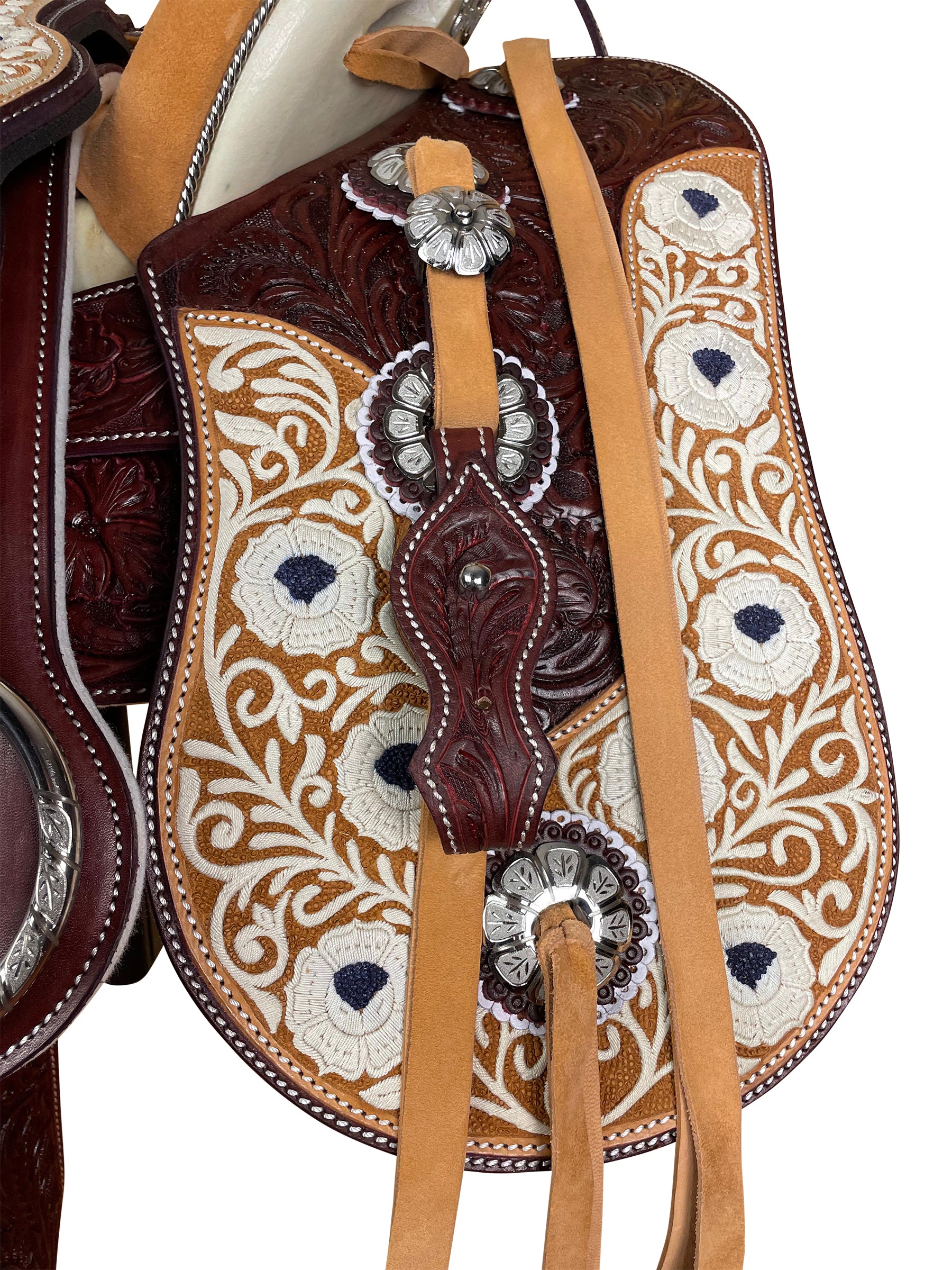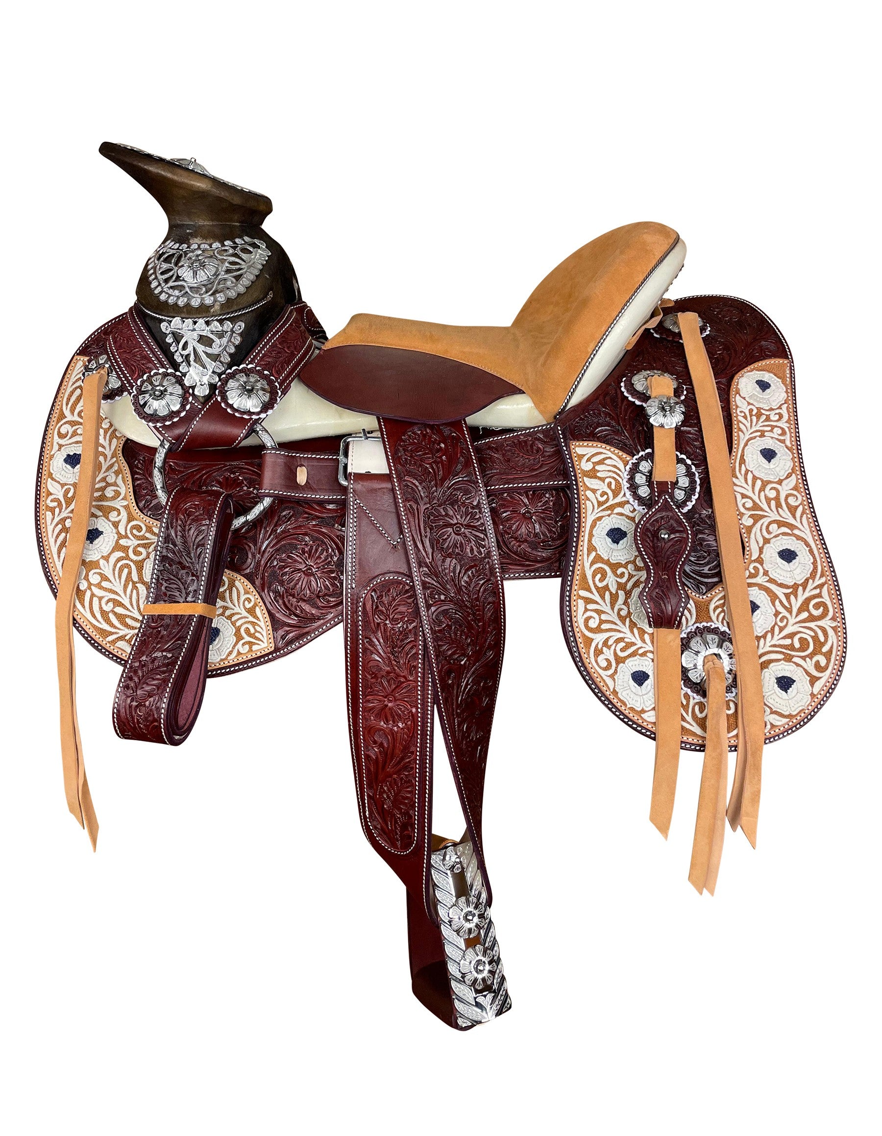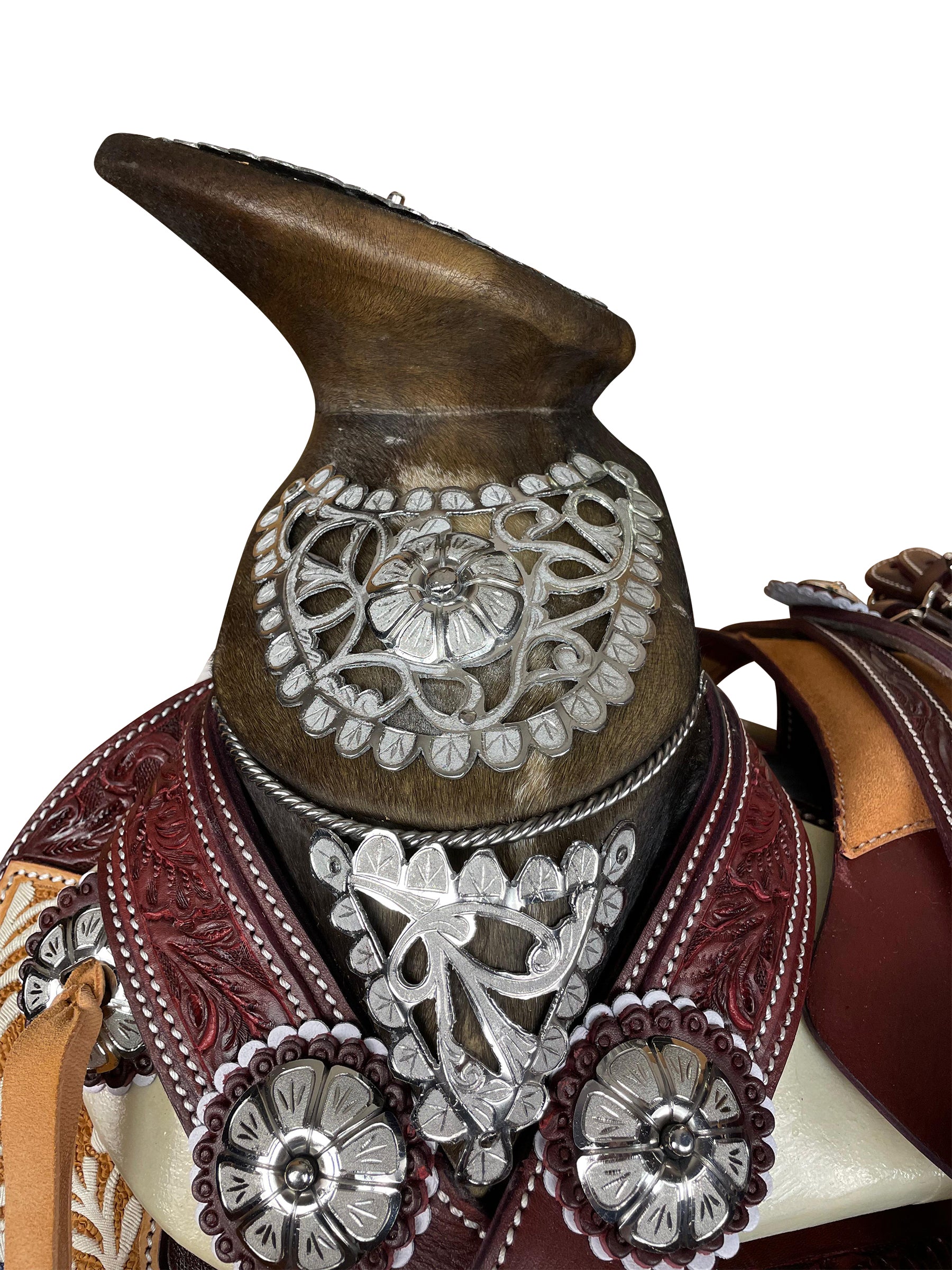 Montura cincelada y bordada en hilo de pita.