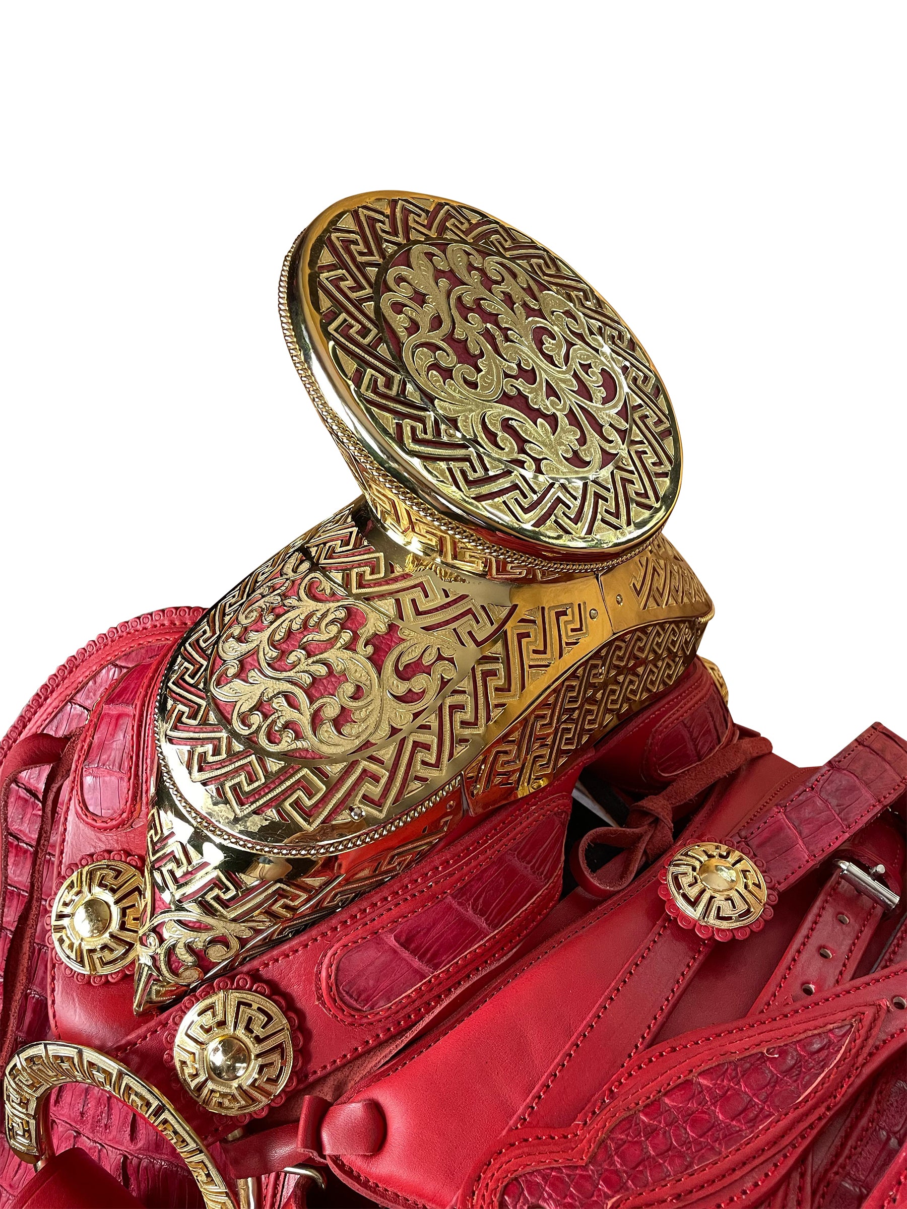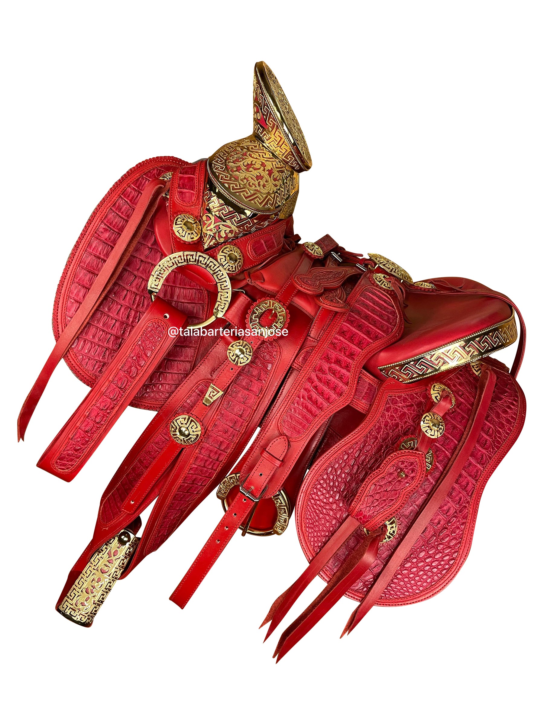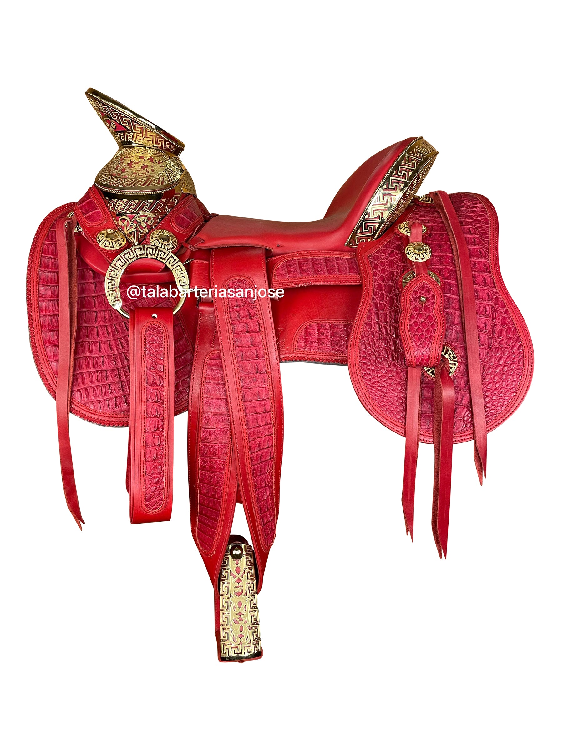 188 - Montura de cocodrilo con fuste en baño de oro