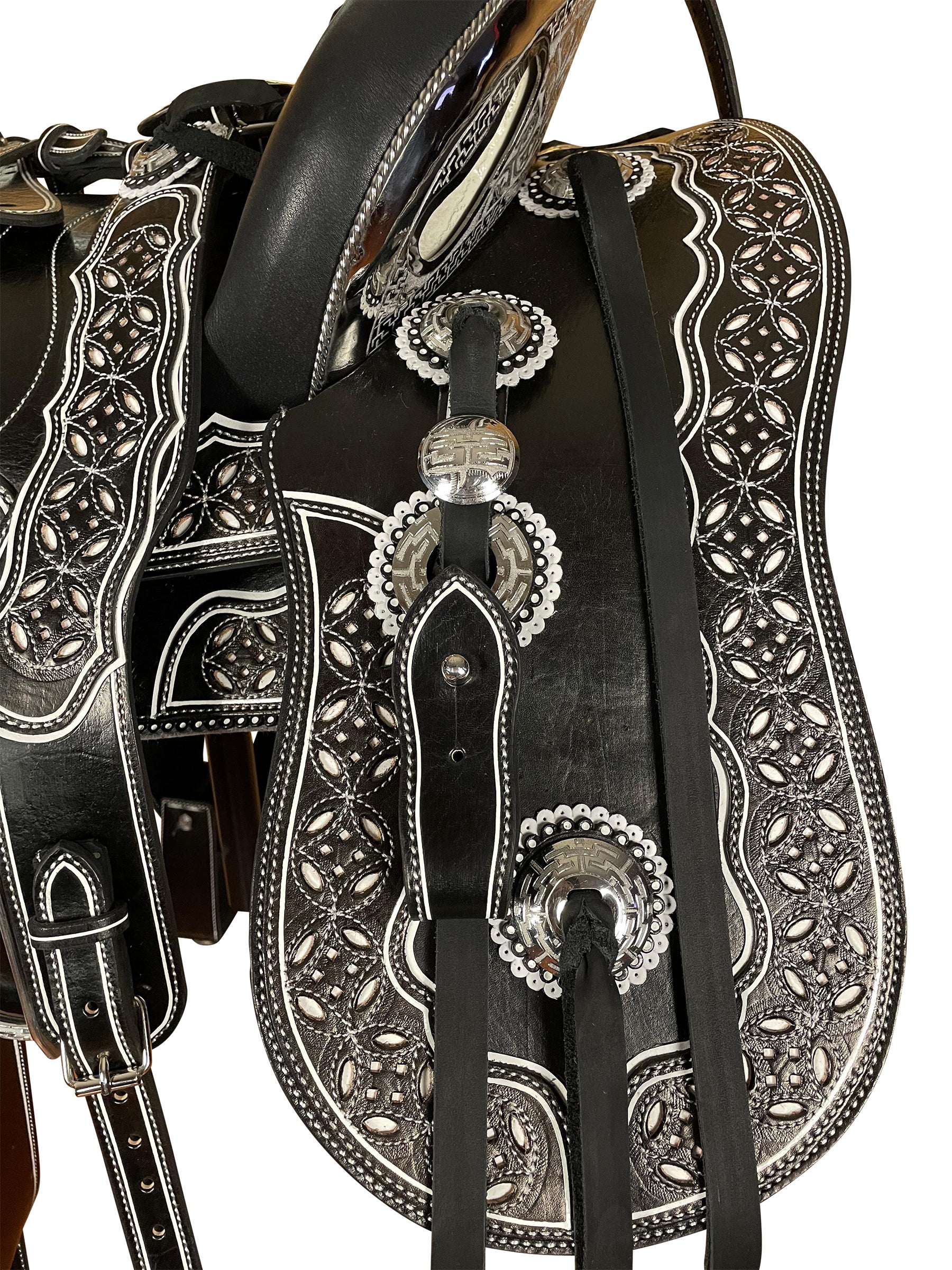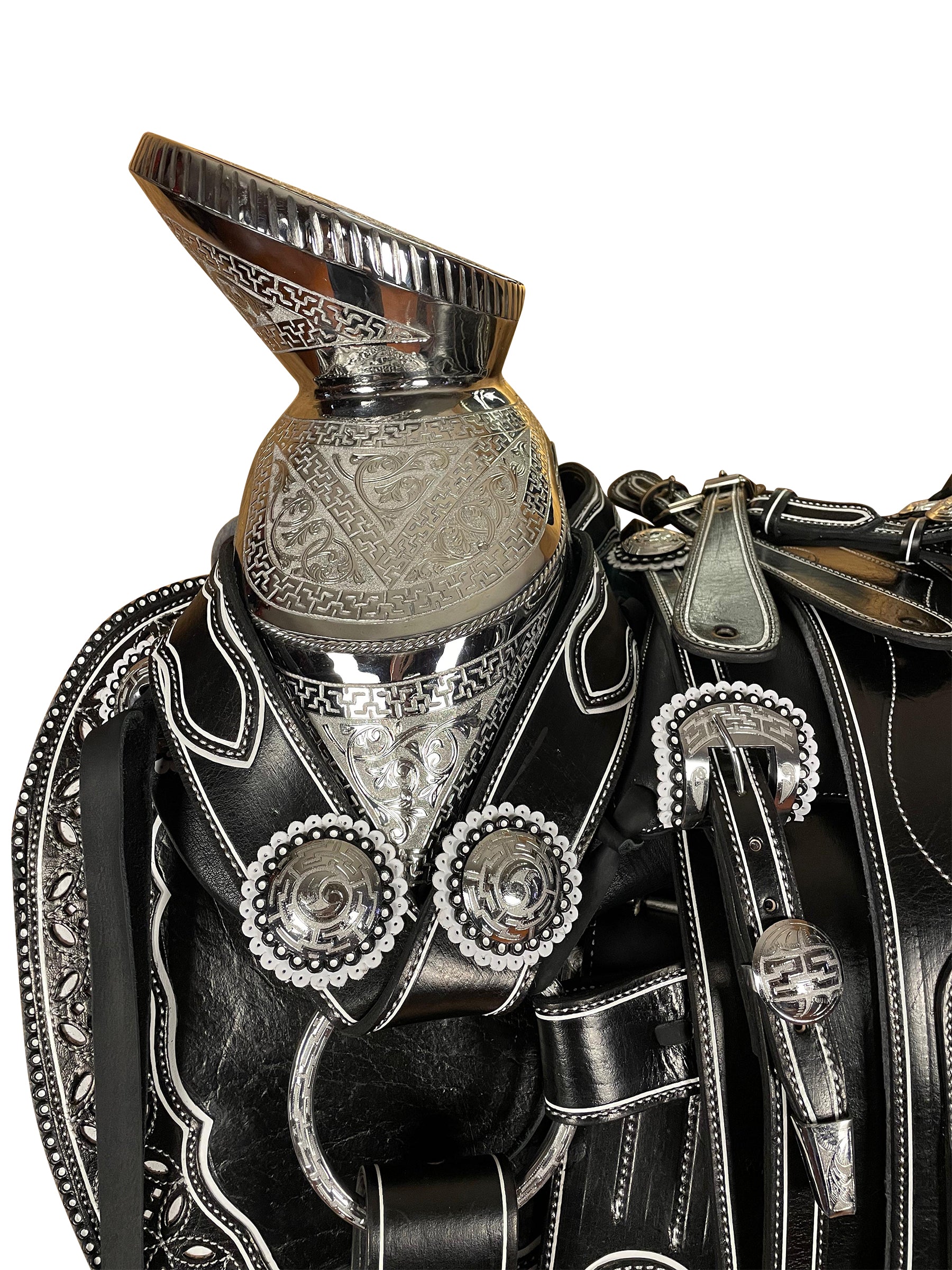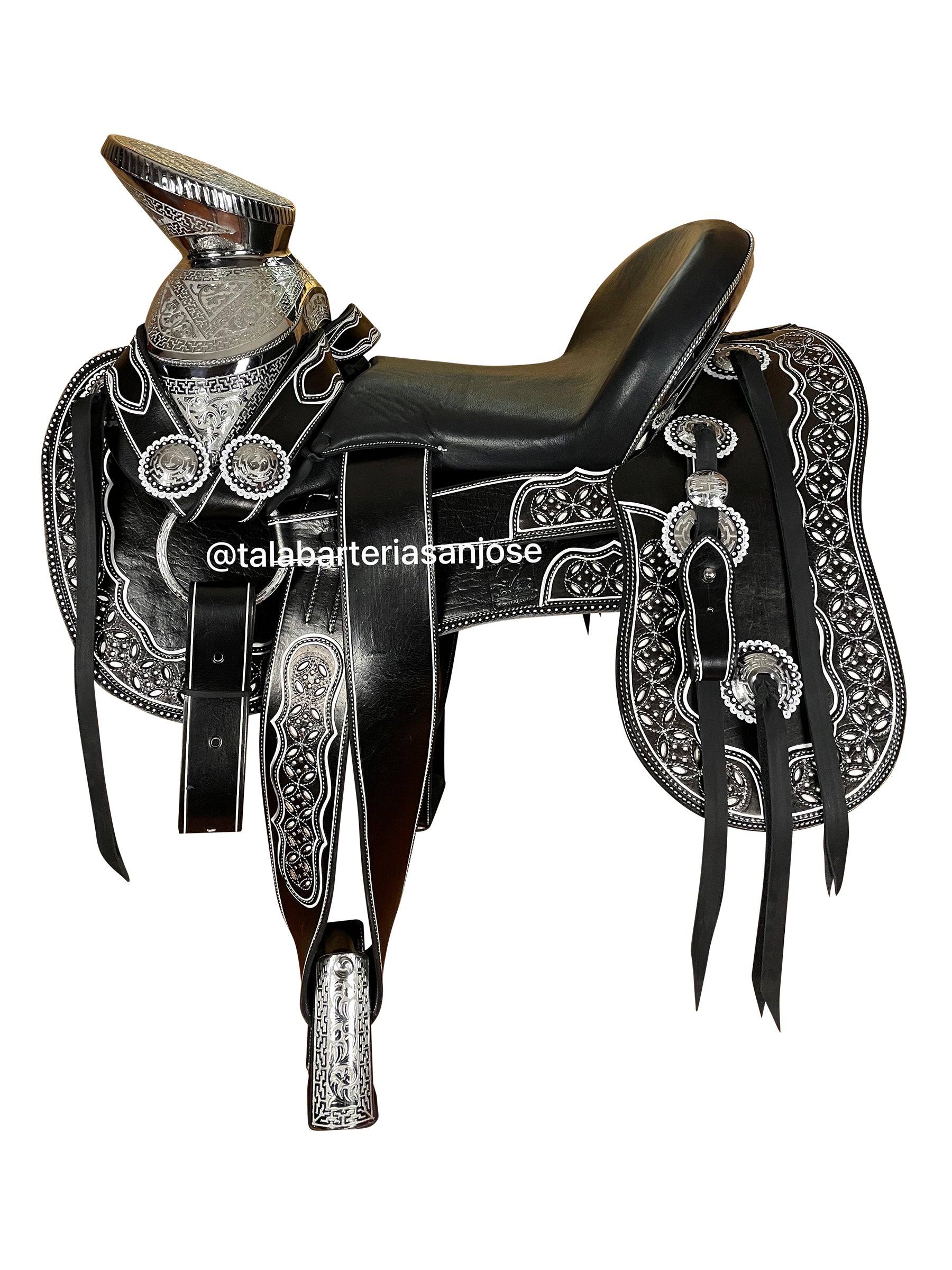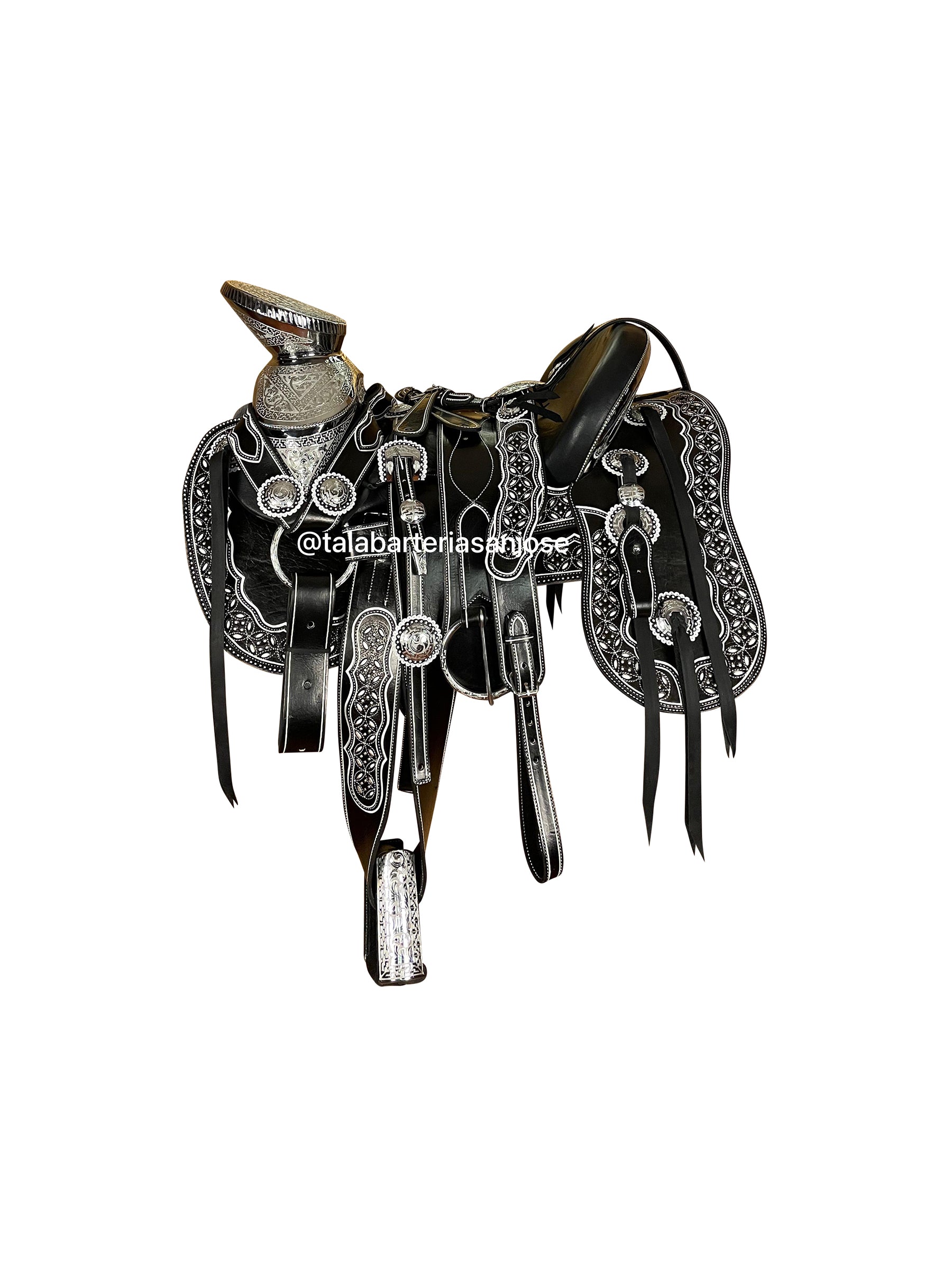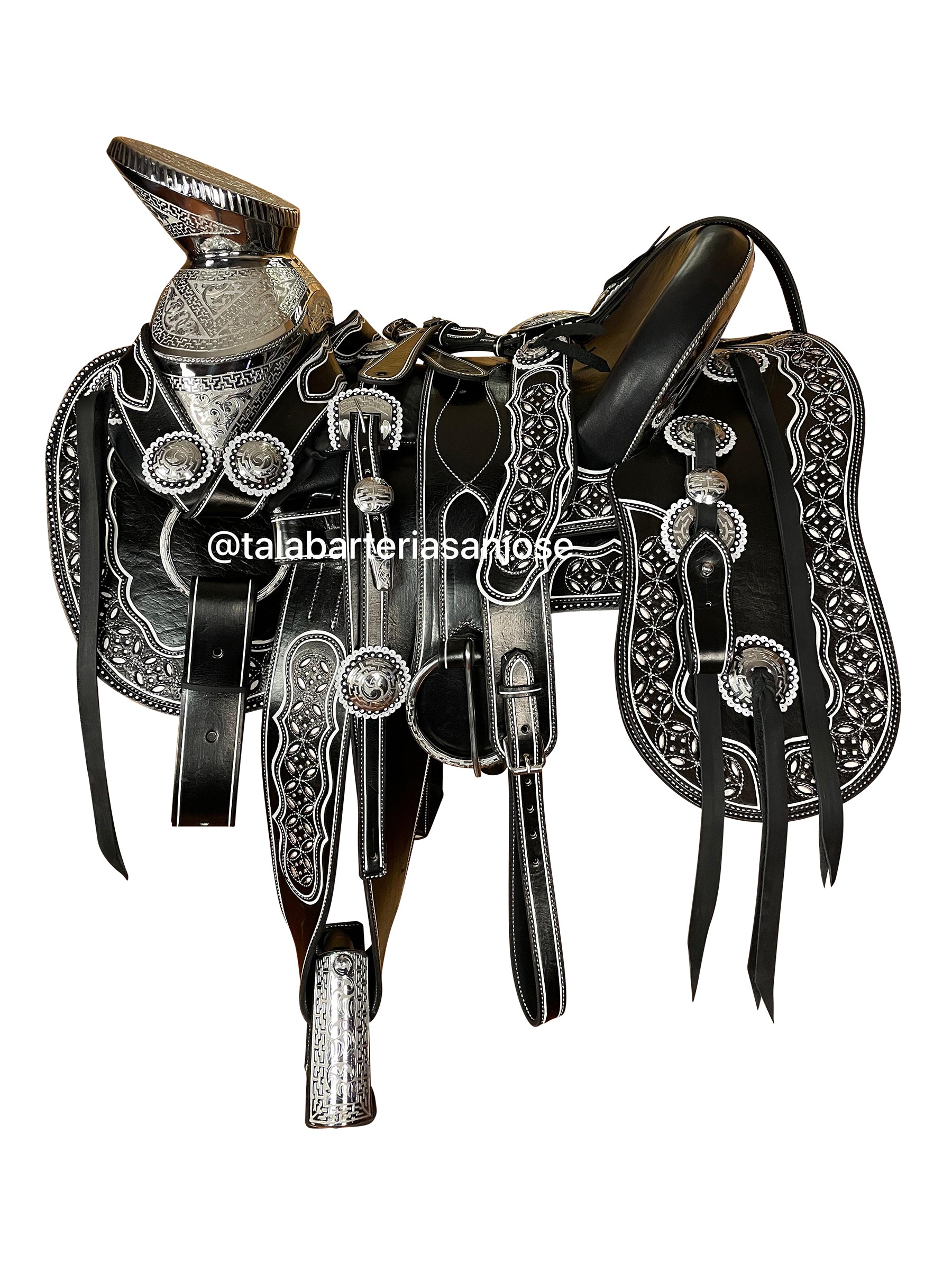 Cabezada, pechopretal con bajador y centro de pecho, cincho, correones para las espuelas