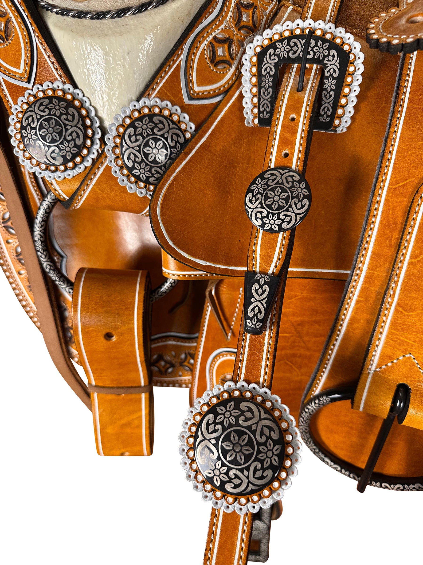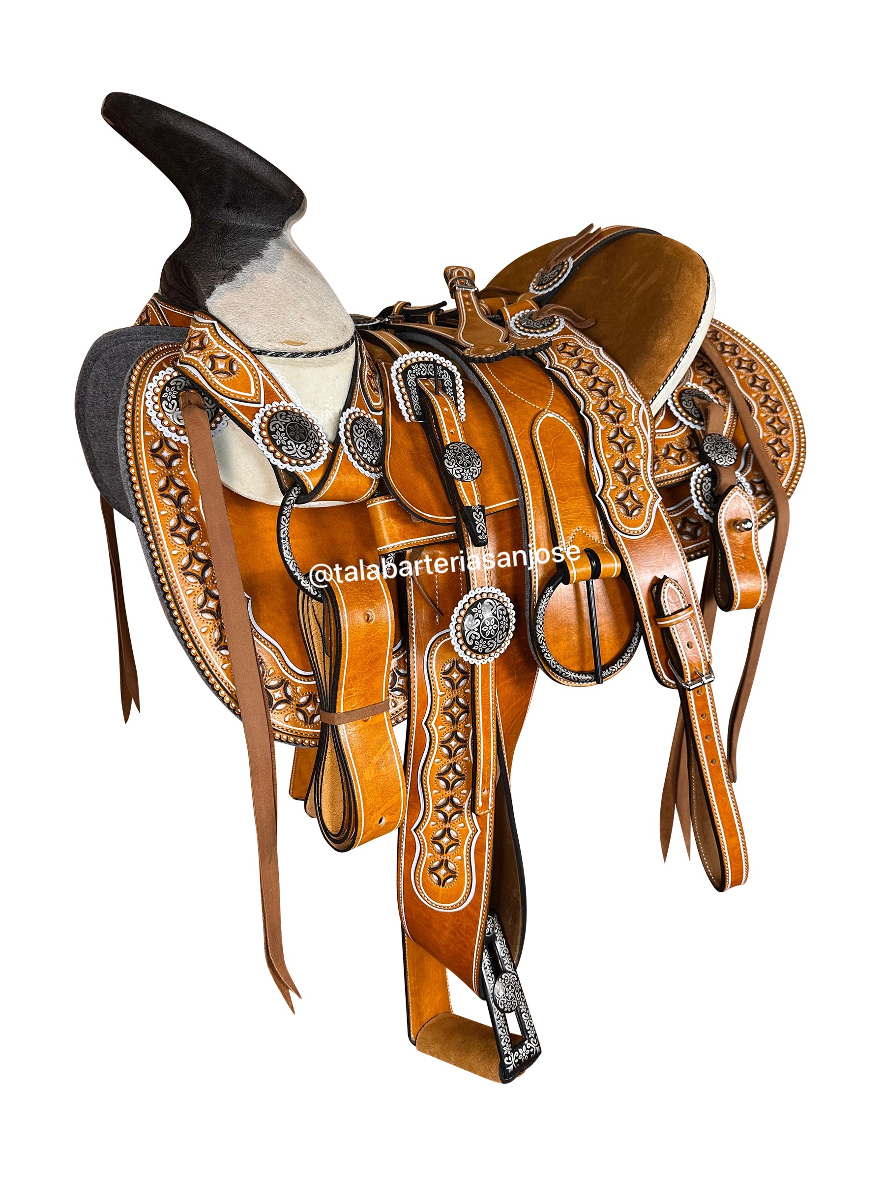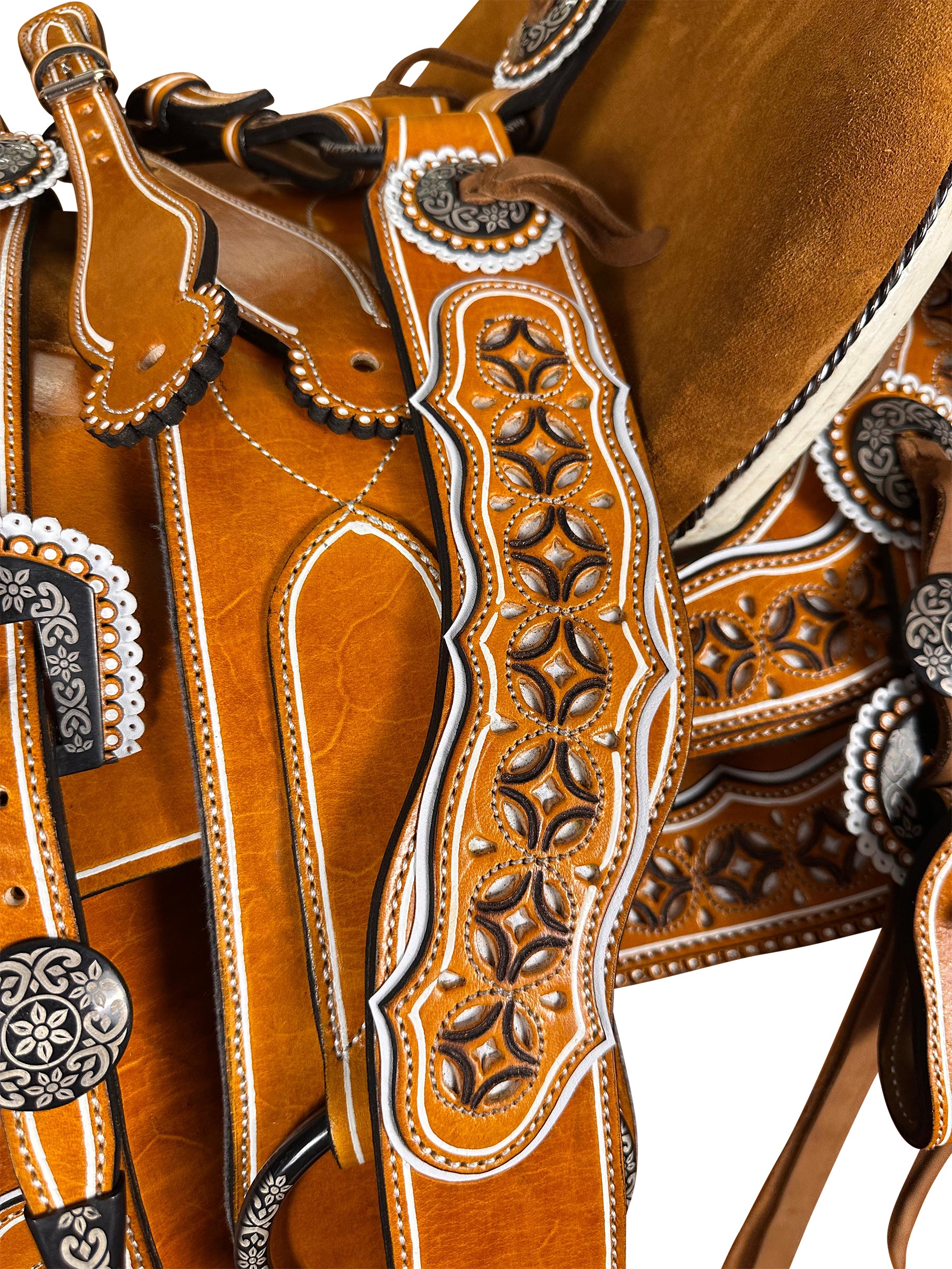 Cabezada, pechopretal con bajador, cincho, par de correones para las espuelas