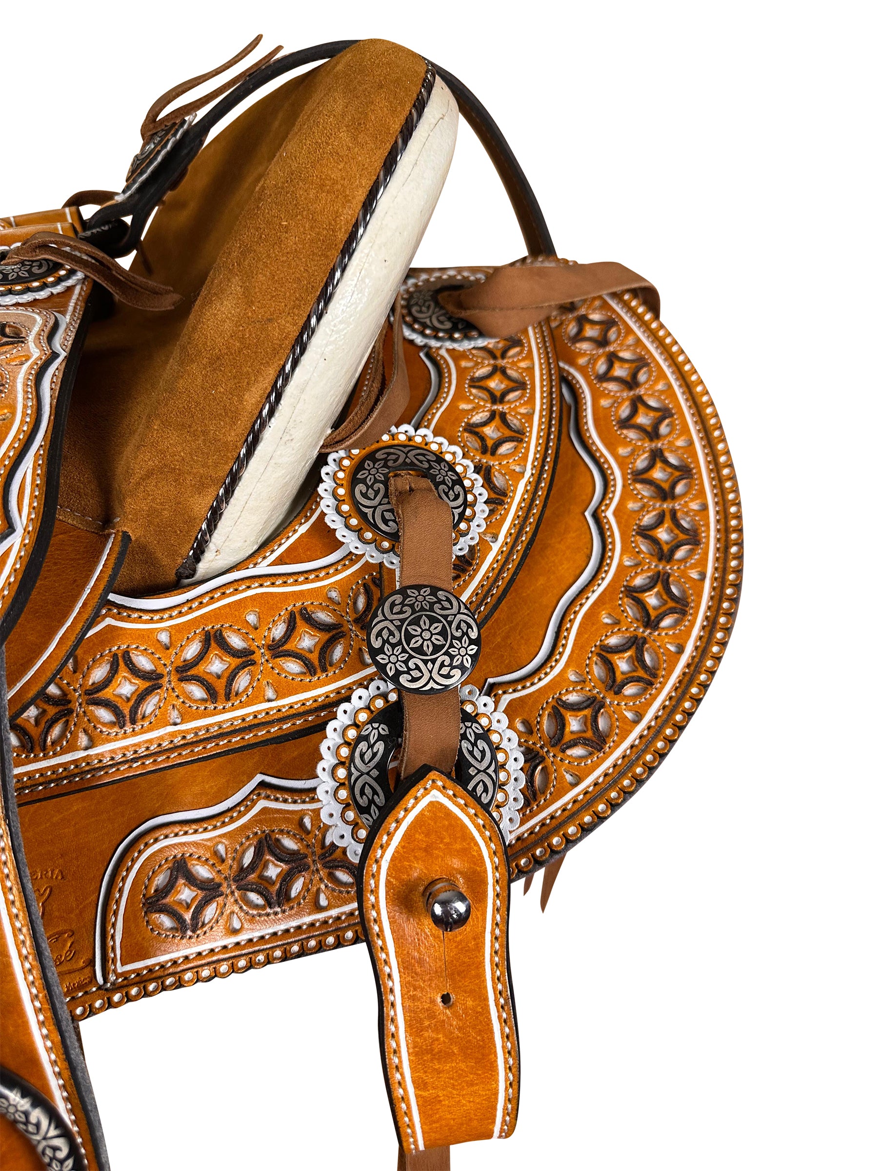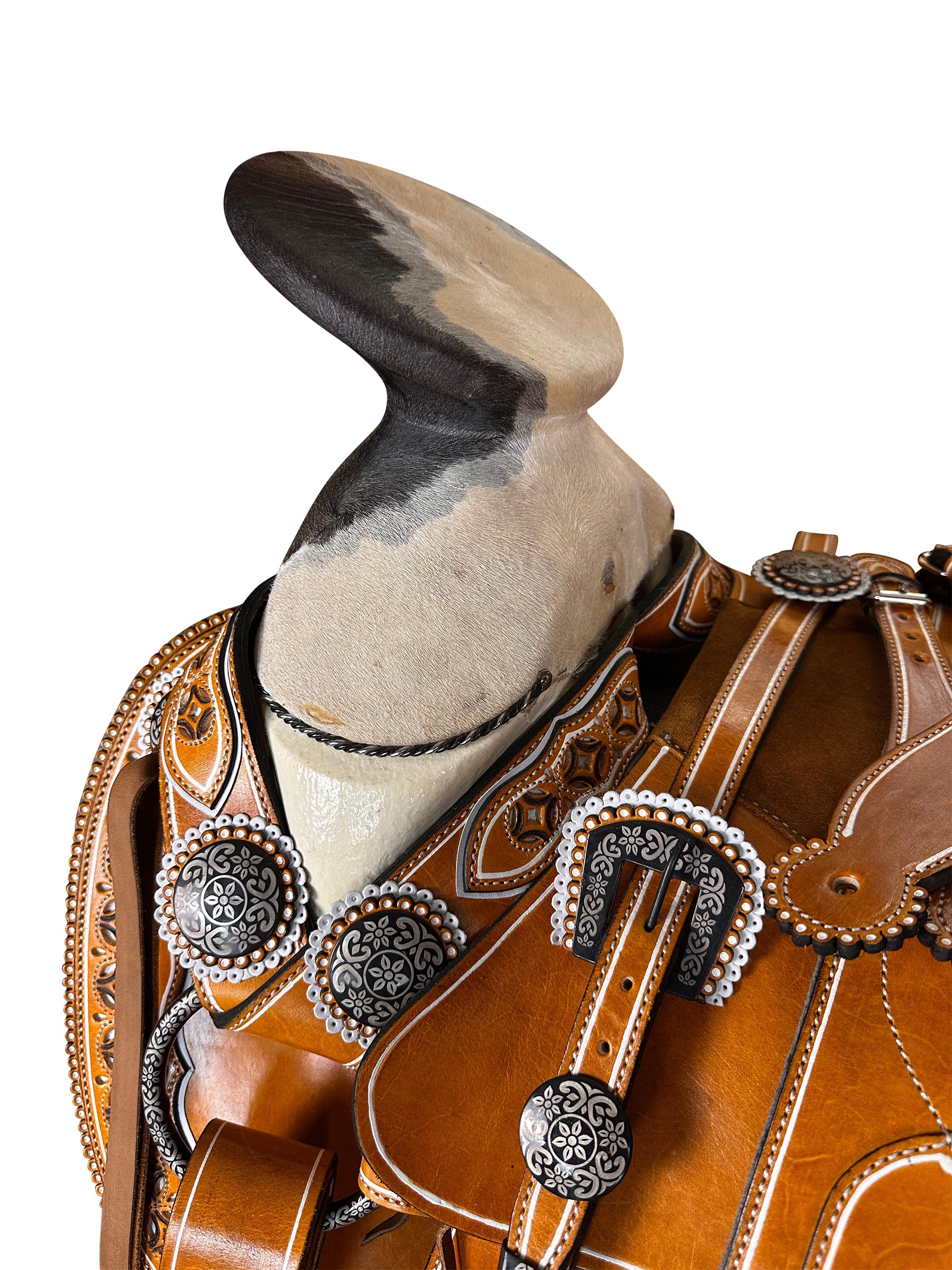 -Montura pirograbada y resacada.