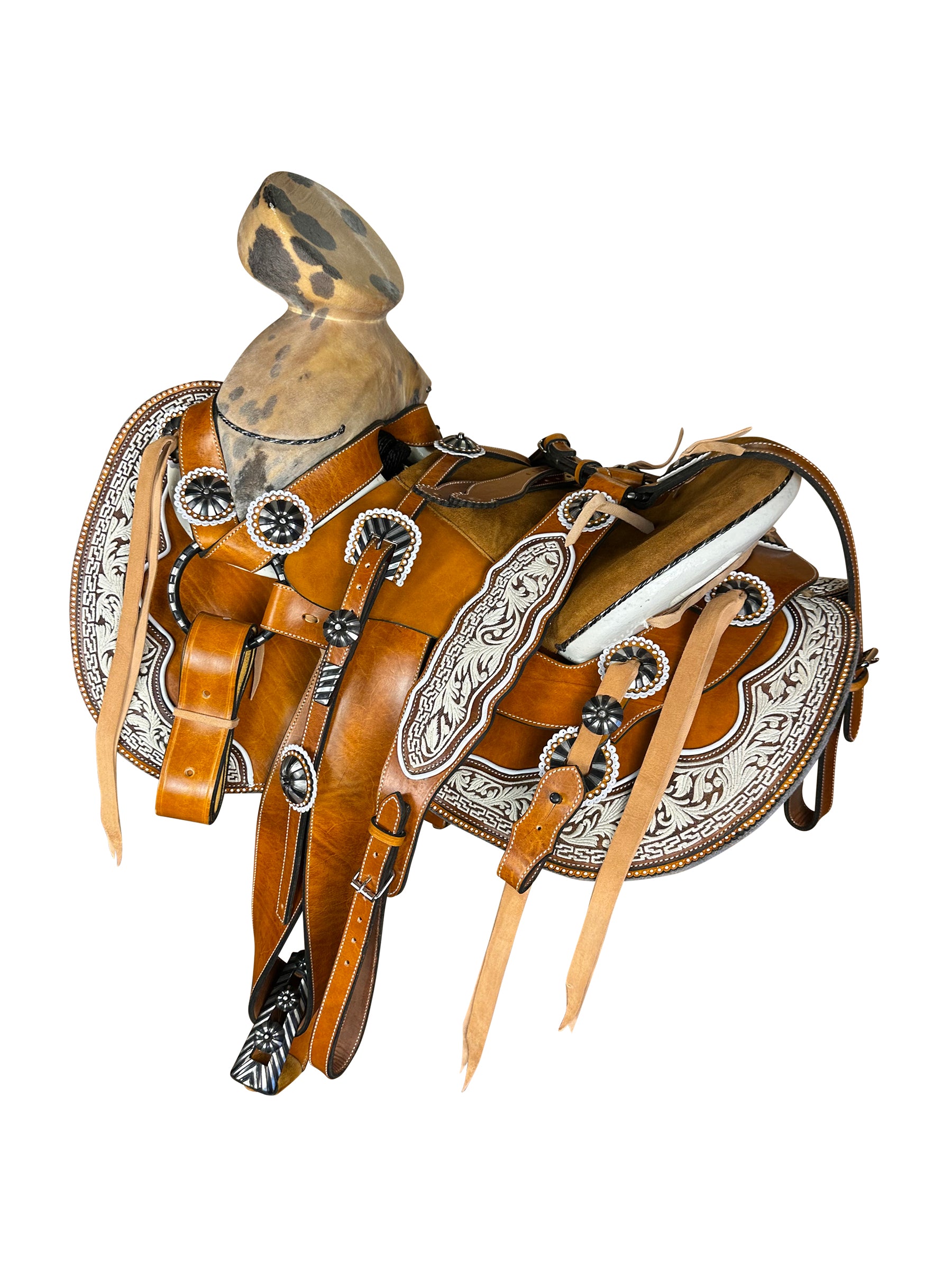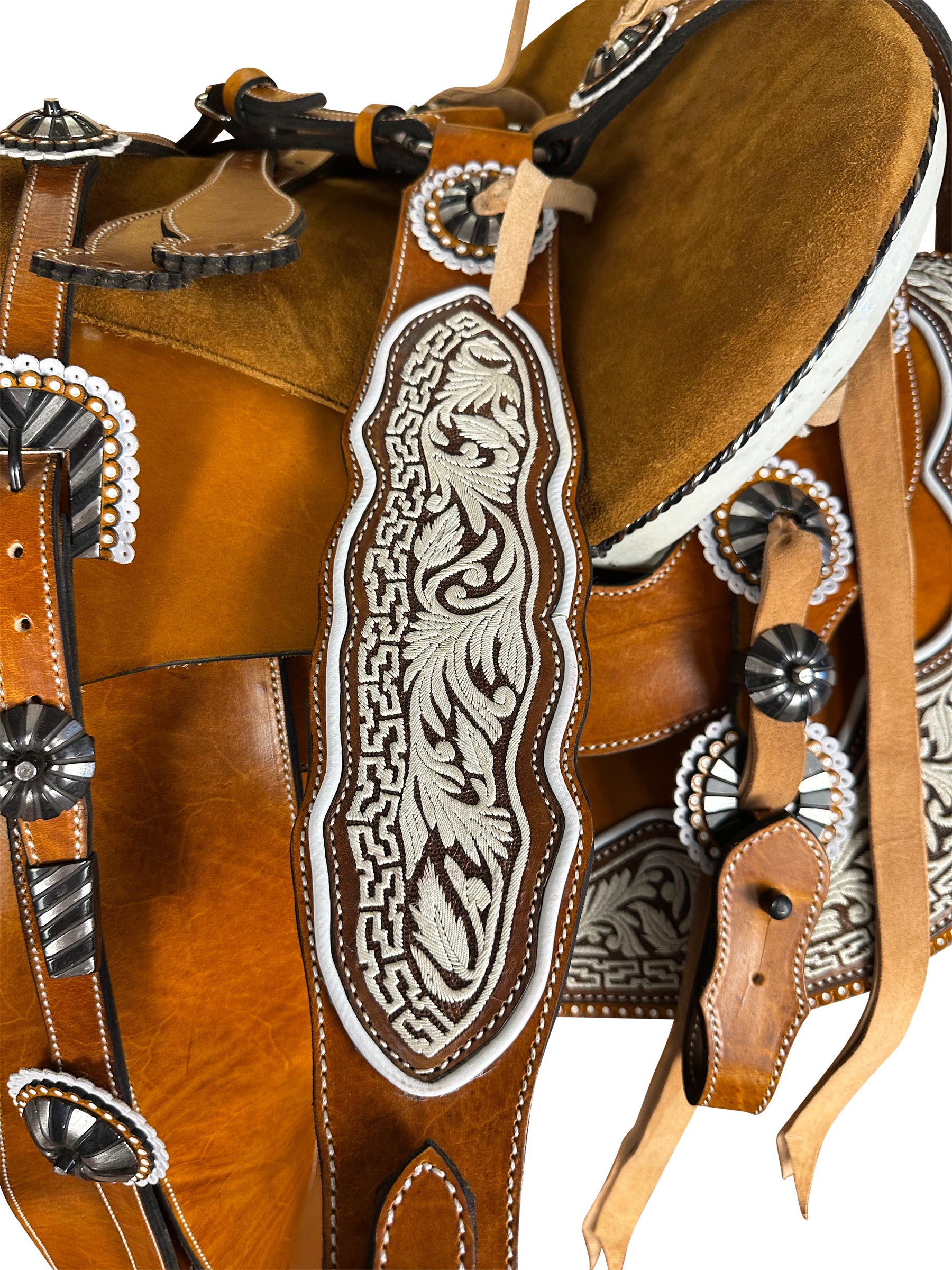-Montura bordada en hilo de pita.