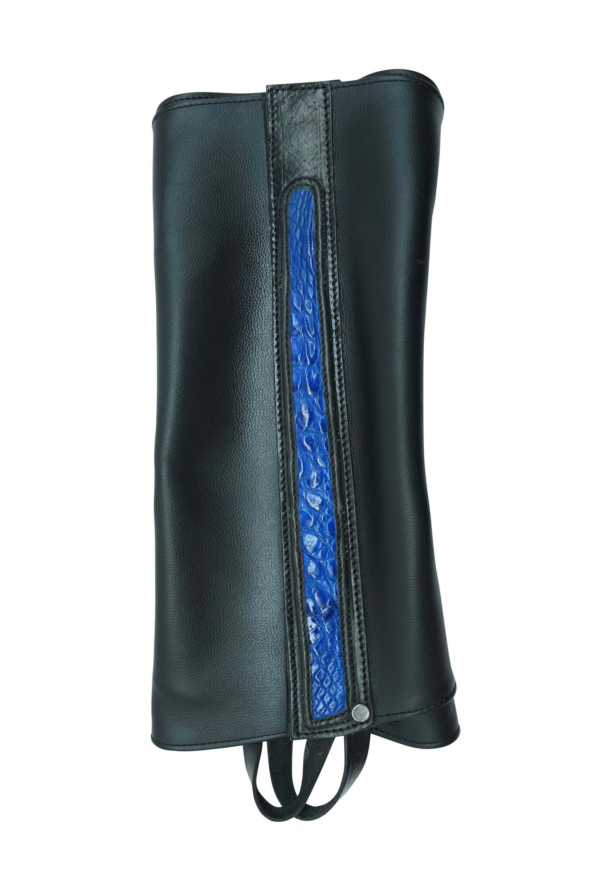 Polaina de piel de res con aplicaciones en piel exótica 100% original, con velcro para mejor ajuste.