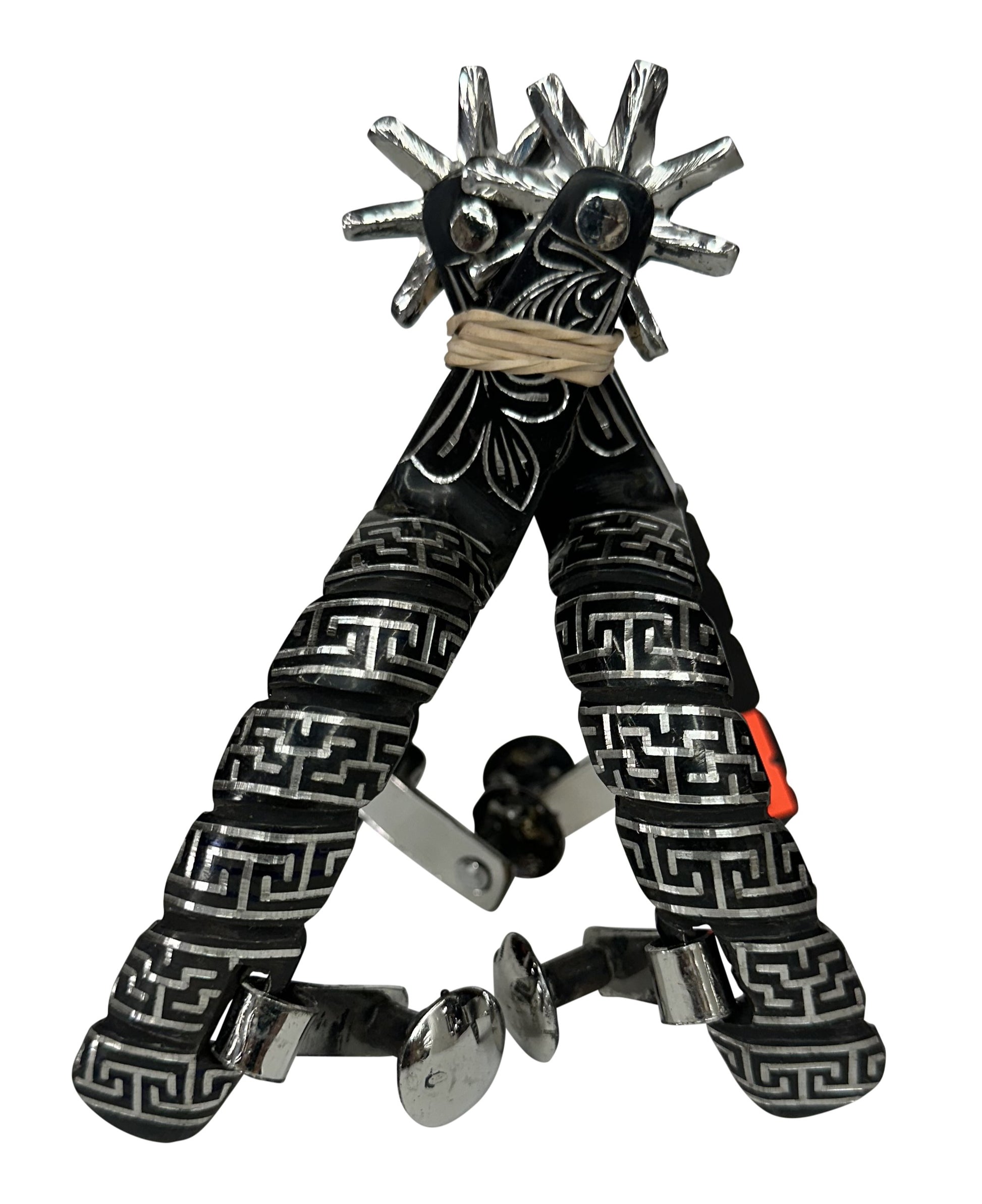 Espuela delgada de acero inoxidable escarbada con acabado en pavón negro.