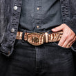 Created to complement our Phoenix and Tucson caiman belly boots, the Montana belt delivers a unified Western statement rooted in texture, tone, and handcrafted finish. Together, they define modern cowboy luxury.