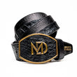 The TEXAS belt is a bold fusion of exotic luxury and branded identity. Handcrafted from genuine caiman crocodile skin and contrasted with premium full-grain calf leather, it delivers a striking interplay of textures. The calf leather front is hot-stamped with the Marco Di Milano insignia, adding depth, dimension, and unmistakable identity to the exterior design.