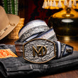 Paired with an antique-finish Western buckle and matching metal tip, this belt speaks with authority—refined, rugged, and built for those who lead with presence.